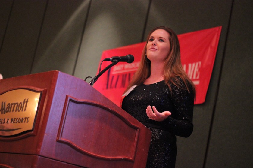 Kathleen Braband accepts her Young Alumni award